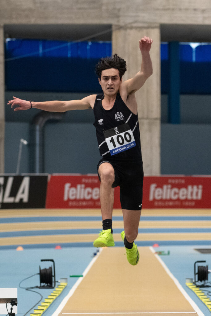 Mattia de Angelis è il nuovo campione italiano promesse indoor. L’atleta dell’Asa Ascoli ha conquistato la medaglia d’oro nel salto triplo con la misura di 16,12 al PalaCasali di Ancona. L’oro conquistato da Mattia de Angelis nel triplo promesse uomini vale anche il record regionale assoluto; nessun marchigiano ha mai saltato tanto, né indoor né all’aperto. La soddisfazione di tutta la società in primis dal presidente Nicola Silvaggi che sottolinea come alla lunga la perseveranza e l’impegno pagano. Mattia ha disputato una bellissima gara realizzando il salto d’oro all’ultimo salto, quando gli avversari non potevano più rispondere. De Angelis, dopo aver condotto tutta la gara in testa piazzando un primo salto a 15,52, negli ultimi due salti Aldo Rocchi della Futuatletica Roma lasciava il segno sulla sabbia, prima a 15,58 al quale Mattia da par suo rispondeva con un ottimo 15,59; all’ultimo salto Rocchi cresceva ancora 15,68, ma il ragazzo dell’Asa Ascoli rispondeva con un straordinario salto a 16,12. Una misura che superava il suo primato personale di 46 cm. Una gara magistrale che porta un altro titolo italiano nella ricca bacheca dell’ASA.