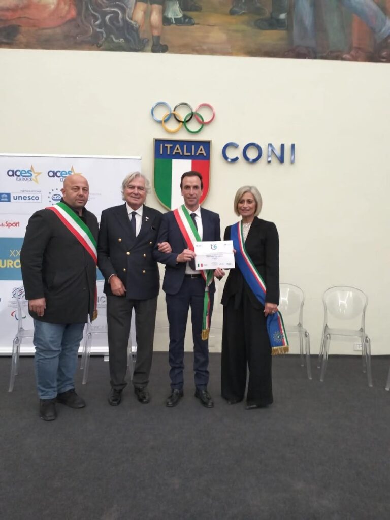 Presenti Presidenti del CONI, del Comitato Italiano Paralimpico, dell’Istituto per il Credito Sportivo e Culturale, il Segretario Generale dei Comitati Olimpici Europei insieme a rappresentanze di ANCI, Special Olympics, europarlamentari, parlamentari e membri del CIO. Durante la cerimonia sono state consegnate le tradizionali Ciotole di Benemerenza dello Sport Europeo a sindaci, amministratori locali, dirigenti sportivi e atleti, riconoscendo l’impegno delle Amministrazioni insignite dei titoli ACES nella promozione dello sport come strumento di inclusione, educazione e coesione sociale.