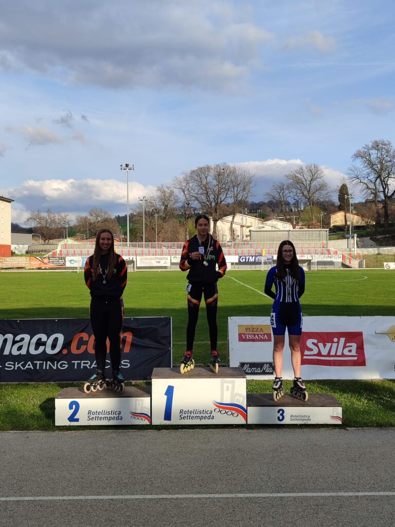 Prestazione superlativa anche per Julia Libetti, capace di raccogliere un argento e un bronzo nelle gare individuali, a cui ha aggiunto un altro splendido argento nella spettacolare Americana Sprint, corsa in coppia con la compagna Benedetta Ricci.