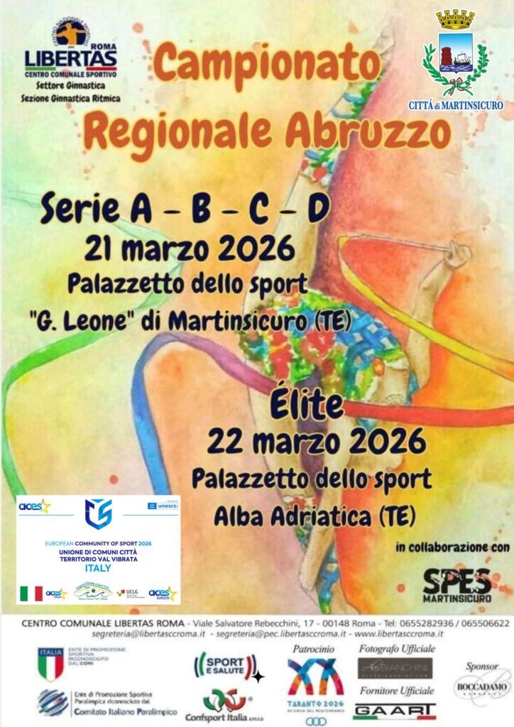 Sabato 21 marzo, al Palazzetto dello sport di Martinsicuro, si svolgerà il Campionato regionale Abruzzo Libertas Serie A-B-C-D: competizione di alto livello che rappresenta un passaggio fondamentale verso le qualificazioni nazionali. L’avvio delle gare è previsto alle ore 14.