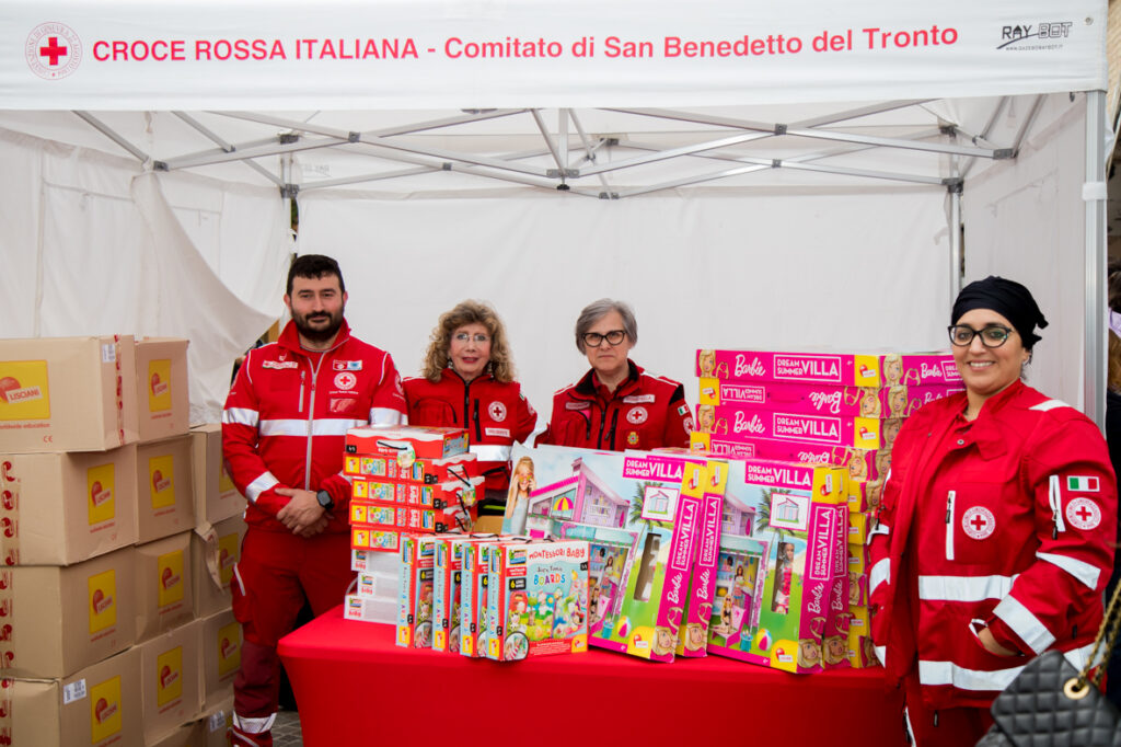 Lo stand della Croce Rossa con la donazione di giocattoli